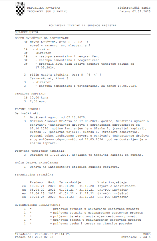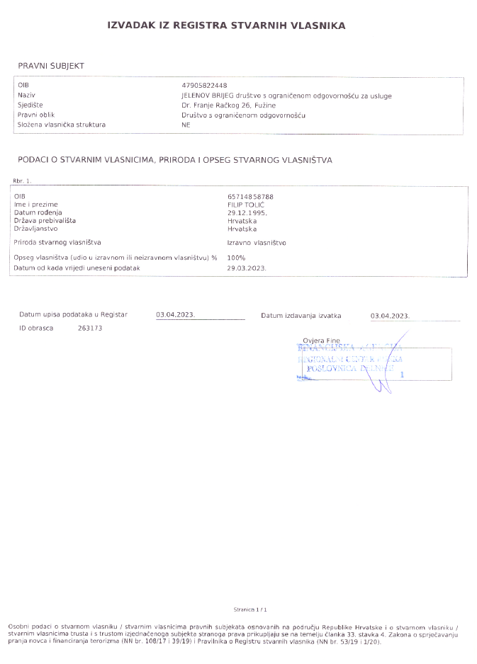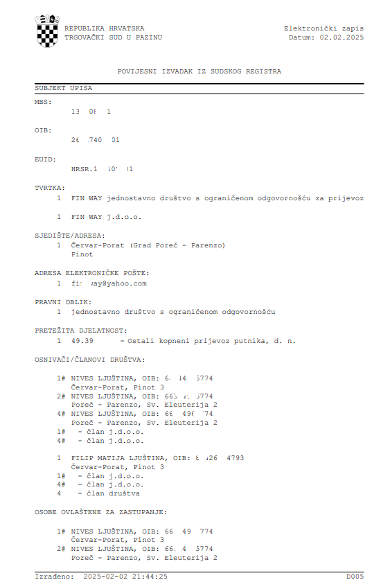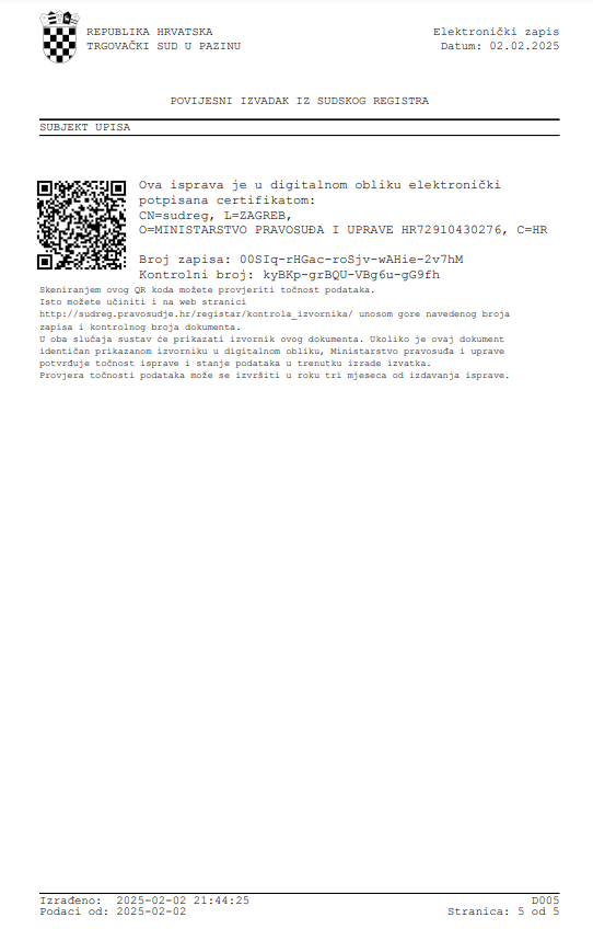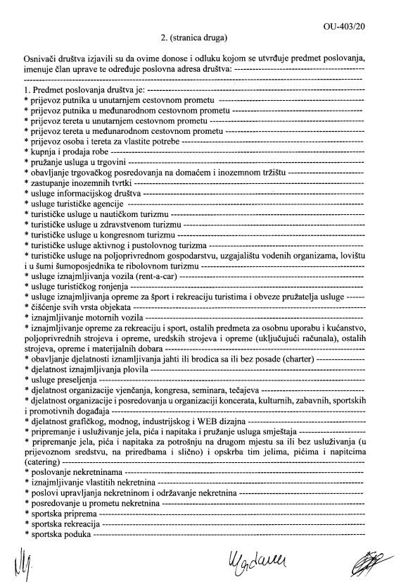 Kako bi klijent predstavio svoju gospodarsku djelatnost, treba nam uvid u izvadak iz sudskog ili drugog registra ili ovjerenu kopiju: