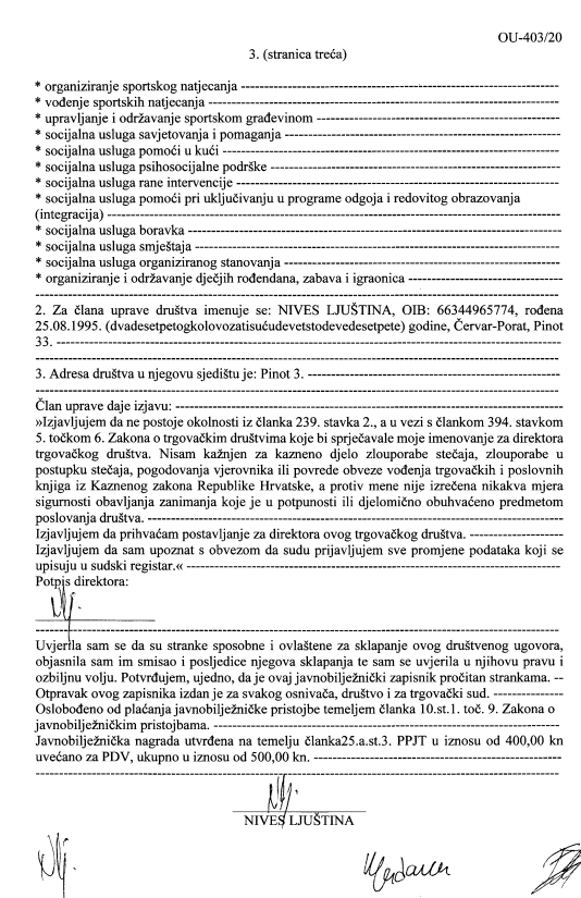 – napraviti neposredan uvid na internetskoj stranici sudskog registra (ili nekog drugog ovisi o pravnoj osobnosti klijenta) – na tom izvatku zabilježiti datum i vrijeme uvida i ime i prezime osobe koja je uvid napravila.