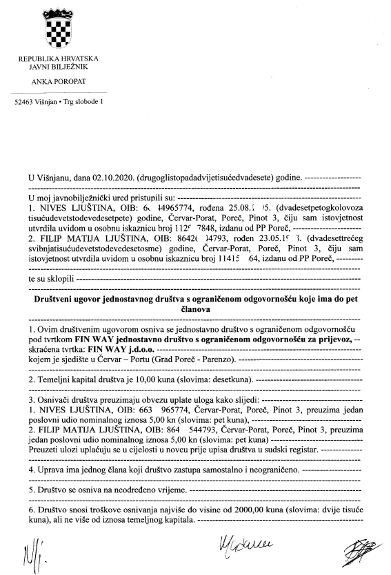 Presliku osnivačkog akta moguće je za pravne osobe upisane u sudski registar u Republici Hrvatskoj pribaviti direktno od stranke ili obveznik može zatražiti uvid u podatke upisane u sudskom registru direktno od trgovačkog suda.